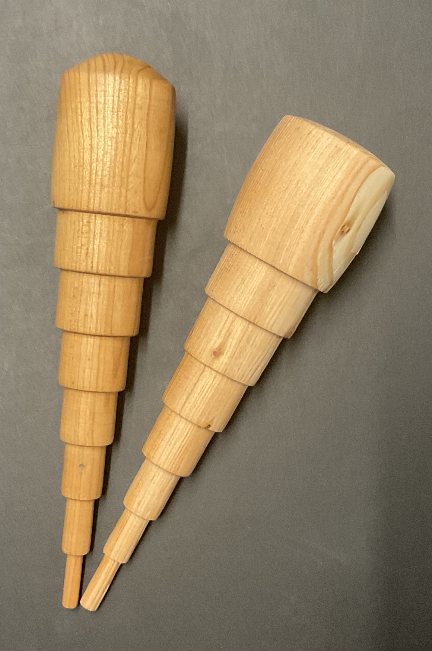 Hedebopindenene er hånddrejet i forskellige typer træ. Prisen er pr stk.